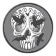 Decorative Sugar skull, Dia De Los Muertos Logo Element with Crows, Ravens, Bat assembled to compose a creepy Halloween Vector Design. Original Art Copyright BluedarkArt TheChameleonArt.