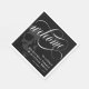 Elegant dark Halloween or goth wedding welcome napkins with welcome written in a swirly white calligraphy script. Add your names and wedding date against a black background with a grey skull. Add a touch of dark romance to your goth wedding with these elegant luncheon napkins! These black, white, and grey napkins feature a swirly calligraphy script and a skull, perfect for your unique and stylish goth wedding. Your guests will love the sophisticated yet on theme design of these napkins.