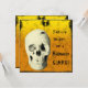 Send out a bone-chilling adult Halloween party invitation with this glowing skull on a background of orange and black. Matching items are shown below.
