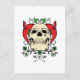 An evil looking skull sits in front of a flowery heart scroll design! Great gift for anyone who loves skulls and hearts!