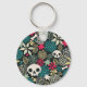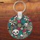 Skull in flowers key ring