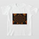 The design extends to the edges of the image, where larger, fragmented versions of the skull motif emerge towards the corners. The black background amplifies the contrast, ensuring that the coloured elements stand out vibrantly.