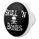Skull n Bones black ceramic knob is for pirate reenactors and pirate fans, horror fans, Goths, rockers, bikers, interior decorators, murder mystery fans, cosplayers, roleplay gamers and people who just like skulls. Skull n Bones is Steamy Raimon original art and calligraphy.