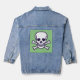 Skull n Bones green denim jackets are for Halloween, horror fans, murder mystery fans, pirate reenactors, roleplay gamers, bikers, rockers, Goths, or just women who like skulls. Skull n Bones is Steamy Raimon original art.