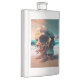 The product is a good size and came exactly as it was pictured. The lid is not attached to the flask, which could be dangerous on drunken nights... The print came out surprisingly well and looks very sharp. Would definitely recommend.