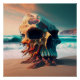 A large skull sits on top of the sand in the ocean, in the style of surreal 3d landscapes, intense color palette, redshift, vibrant illustrations, photo-realistic landscapes, textural explorations