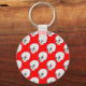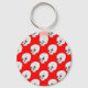 A pattern of white skulls on a red background. Original design with newsprint effect. Black, white and red cartoon image.