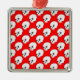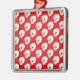 A pattern of white skulls on a red background. Original design with newsprint effect. Black, white and red cartoon image.