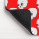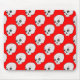 A pattern of white skulls on a red background. Original design with newsprint effect. Black, white and red cartoon image.