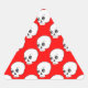 A pattern of white skulls on a red background. Original design with newsprint effect.  Black, white and red cartoon image.