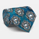 A skull image is framed with an ornate design and placed in a pattern that covers the surface of this unique neck tie. The pattern is placed on a gradient royal blue background.