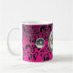 SKULL RIDERS PINK FUCHSIA BLACK DAMASK COFFEE MUG