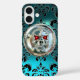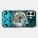 SKULL RIDERS TEAL BLUE DAMASK GEM Aquamarine Case-Mate iPhone Case