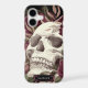 Personalised cell phone case featuring a watercolor skull and roses design against an editable black background with a name or monogram in an ornate nameplate. ASSISTANCE: For help with design modification or personalisation, colour change, transferring the design to another product or if you would like coordinating items, contact the designer BEFORE ORDERING via the Zazzle Chat MESSAGE tab below or email makeitaboutyoustore@gmail.com.