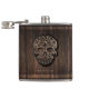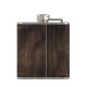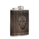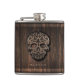 Skull Scroll on Faux Wood Textured Background Hip Flask