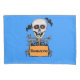 These pillowcases are a vibrant blue colour with skulls that have red glowing eyes and tree branches for arms holding an orange sign that says Beware with black bats flying over their heads.