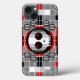 Cool retro TV testcard pattern inspired design featuring a stylised skull and crossbones in shades of black, white, grey and red. A customisable design for you to personalise with your own text, images and ideas. An original digital art image created by Jess Perry.