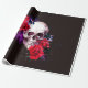 Skull with dark flowers branches and red roses sea wrapping paper
