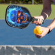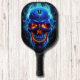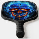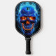 Skull with Flames Black Blue Modern Monogram Pickleball Paddle