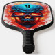 This modern pickleball paddle design features a skull engulfed in flames with your initial in bold black text for a look that is simple and stylish, yet super cool. It makes the perfect gift for Christmas, birthday, Father's Day, Grandparents' Day, graduation, retirement, and more.