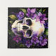 Watercolor artwork featuring a human skull surrounded by purple flowers against a black ground. A feminine goth aesthetic for any season!