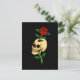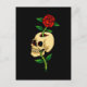 A classic vintage tattoo art image of a skull with the stem of a red rose growing through it.