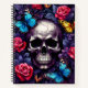 A silvery grey skull is surrounded by red roses, purple foliage, and blue and yellow butterflies on this fabulous Goth notebook. Dark, haunting, and oh-so-beautiful!