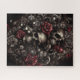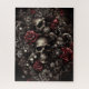 A dark, edgy background with skulls, gothic roses, and intricate, tattoo-like poker symbols