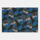 Skulls and Blue Roses | Cool Funky Dark Grunge Wrapping Paper Sheet