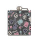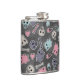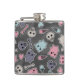 Skulls, and hearts on black background hip flask
