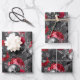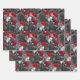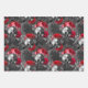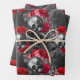 Skulls and Red Flowers on Grey Wrapping Paper Sheet