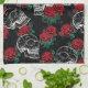 Skulls and Red Roses | Modern Gothic Glam Grunge Tea Towel