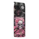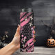 Skulls and Roses Gold Silver Glitter Halloween Thermal Tumbler is basically Pink and Black with floral skull over a glitter pattern backdrop. Customize this tumbler for your favorite person that loves Halloween. Change up the name or add your favorite quote, make it totally unique. This trendy shades of pink and black thermal tumbler makes a great gift!