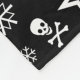 Skull and crossbones with pretty snowflakes and stars against a black background.