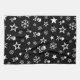 Skull and crossbones with pretty snowflakes and stars against a black background.