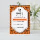 Skulls damask orange, black Halloween wedding RSVP Card