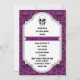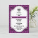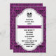 Skulls damask purple, black pattern & banner Halloween wedding bridal shower invitation. This elegant design features a damask floral and skull pattern, a frame in the centre, a black skull and a purple banner. A contemporary yet classy design with a vintage style font. Elegantly spooky design, perfect for Gothic or Halloween fall/autumn or winter weddings. It is a fully customisable template and is part of a wedding set.