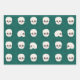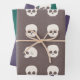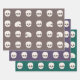 Grid pattern of skulls over coloured backgrounds of scattered bones. Great for halloween.
