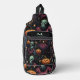 A funky skulls and pumpkin Patterned sling bag. A great gothic spooky design that features orange pumpkins, blue skulls and large candles all on a black and purple background. A great way to add a stylish splash of moody goth to your slingbag. Add an initial for a monogrammed gift.