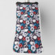 Human skulls are surrounded by beautiful red and white flowers, with blue foliage. Awesome Goth design!