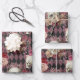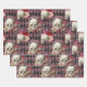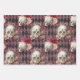 Skulls with Roses and Pink Purple Checkered Wrapping Paper Sheet