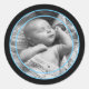 Sky Blue and Black Photo Frame Classic Round Sticker