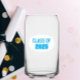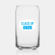 Trendy can glass for the school grad that features school colours of sky blue and white, with class year printed in bold, sky blue lettering on a white oval background. Great for graduations and class reunion parties. Edit class year with your own as desired.