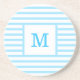 Get a cute simple modern sky baby blue and white stripped coaster with your custom monogram name or initials, to your cosy home or office! Made with sandstone. Customise it with your favourite font and colour to make it your one and only happy coaster!