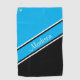 Sky Blue Black Diagonal Stripe Script Name Golf Towel