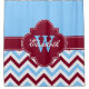 Sky Blue Burgundy LG Chevron 1ICBR Name Monogram Shower Curtain