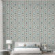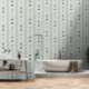 A whimsical circus-themed wallpaper with stripes, tents, balloons, and playful shapes, brought together in a warm, modern color palette designed for nurseries and boys bedroom.
