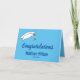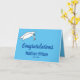 On the front, this sky blue graduation card has a white graduate's cap in the upper left corner. The display text says 'Congratulations' in dark blue script. Also, there's a place for the graduate's name in dark blue text. You can even add the class of year under the name. Inside of the card, there's an inspirational message. You can personalize the inside message with the graduate's name and your name as the sender too.