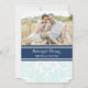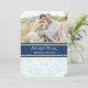 Custom photo template rehearsal dinner party invitations in modern and elegant light turquoise sky blue, dark navy blue and white chic and classic floral damask vintage pattern. Personalise the text to create a unique invitation for your wedding rehearsal dinner. Contact us to request a colour change. Available in many matching wedding products.