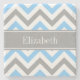 Sky Blue Dk Grey Wht LG Chevron Grey Name Monogram Stone Coaster